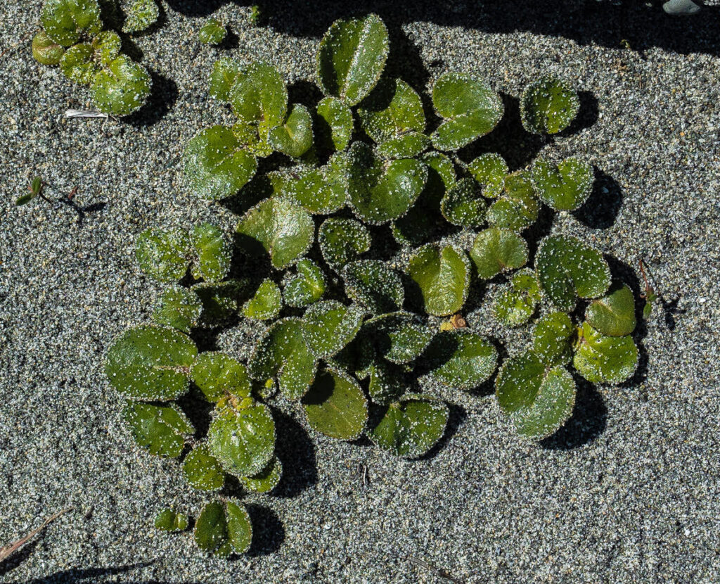 - Yellow sand verbena (Abronia latifolia): dunes, sandy upper beach
