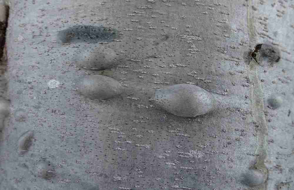 - Close-up of the smooth bark and bumpy resin blisters of amabilis fir.