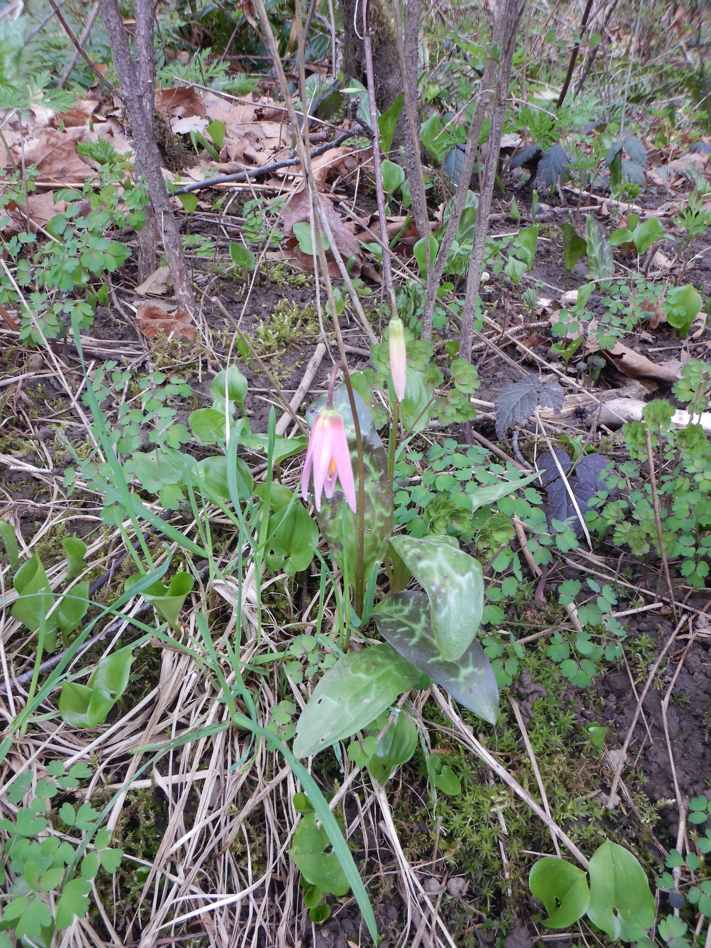 Pink fawn lily (Erythronium revolutum): Great displays along the floodplain. I notice that the fawn lilies in the Campbell River area seem to have a deeper pink colour than the Courtenay ones. The Canyon trail can be spectacular for these also.