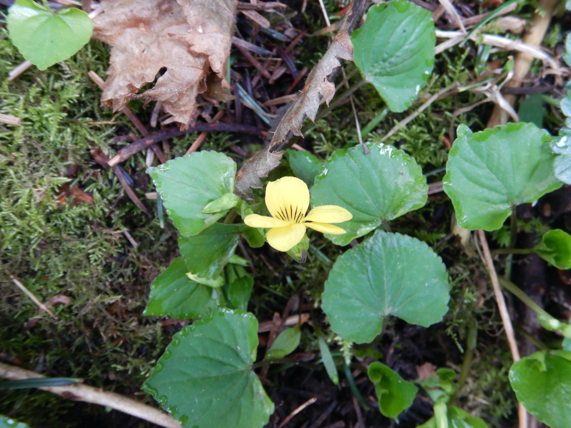 The next set of photos (#4-6) are from the Tsolum River flats at the Exhibition Ground. Along the Tsolum there are lots of identifiable leaves popping up (bleeding hearts, false lily of the valley, western meadow-rue, etc.) Banks of fawn-lily leaves (Erythronium revolutum or E. oregonum) with buds, but there was only one pink fawn-lily bloom barely open ( E. revolutum). We found a couple of small yellow violets (Viola glabella) and one diminutive trillium (Trillium ovatum). Warmth is in order!