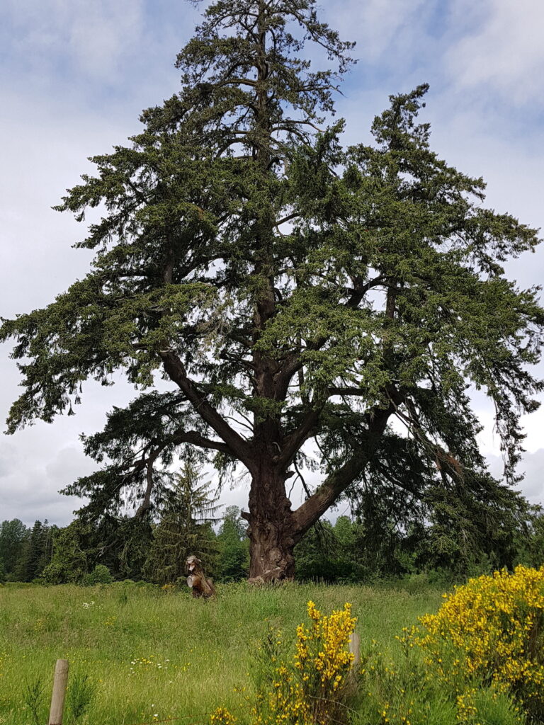 Location: In a hay field on the north side of Huband Rd., approx. 475 metres from the intersection of Huband Rd. and HWY 19A. (The field is beside the property at 2646 Huband but is not owned by them). I would recommend parking on Mottishaw, no houses on that road, and then walking down Huband to view the tree, about 400 metres. Parking is also available at Huband School on Mottishaw during non-school hours (about 500 metres from the tree). Bikes are best! GPS of tree: 49.728397, -124.989768.
