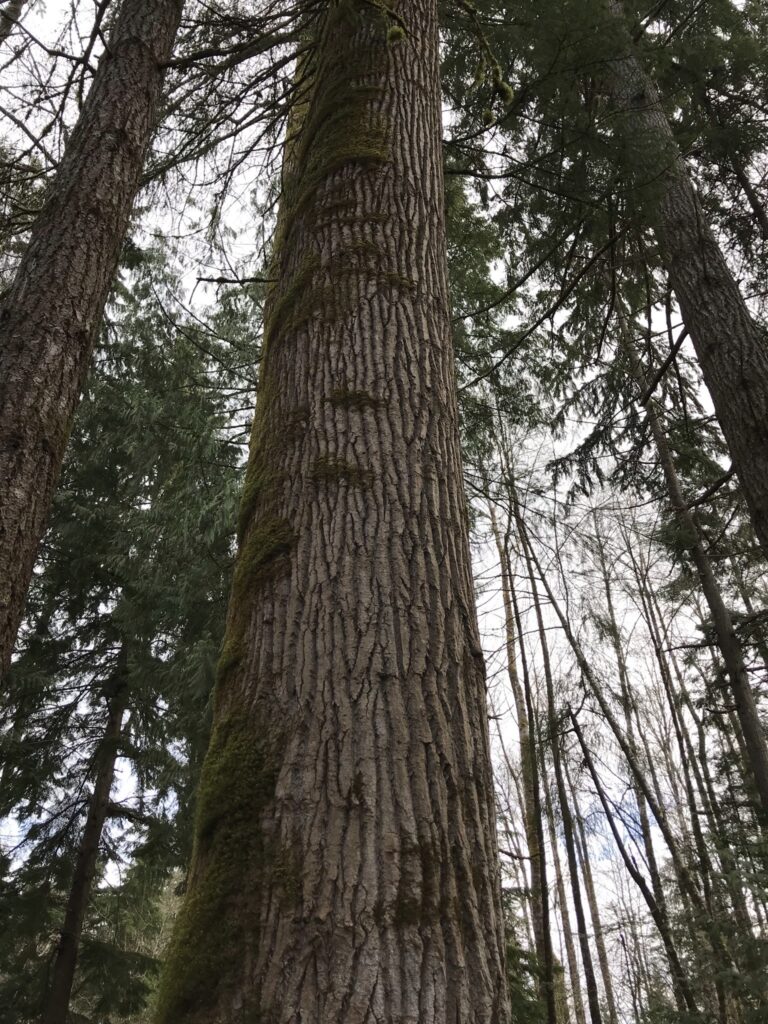 “Doug” is about 37 m tall and 60 cm DBH. It looks as if the top was broken at some time.