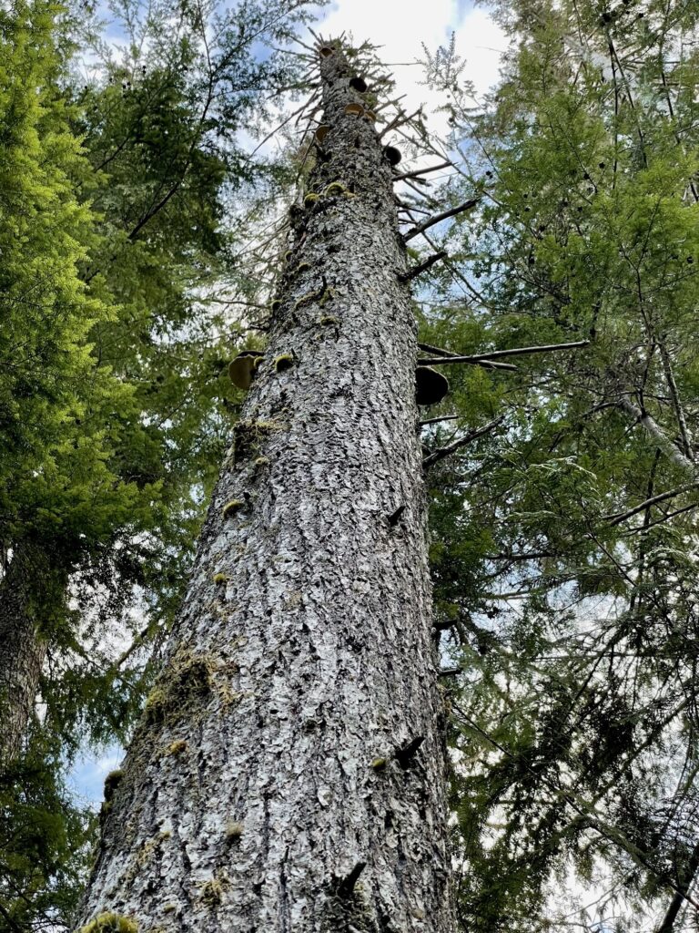 We noted that this white pine is very robust and there is no sign of blister rust so it would seem it has a long life ahead of it. Good candidate for resistance to the rust. BC used to have a high proportion of white pine in the landscape. It’s more resistant to shade than Douglas fir and is more resistant to root rot, making it a good choice for mixed species planting. The tree breeders have developed resistant seed orchards and more white pine is included in the planting program.