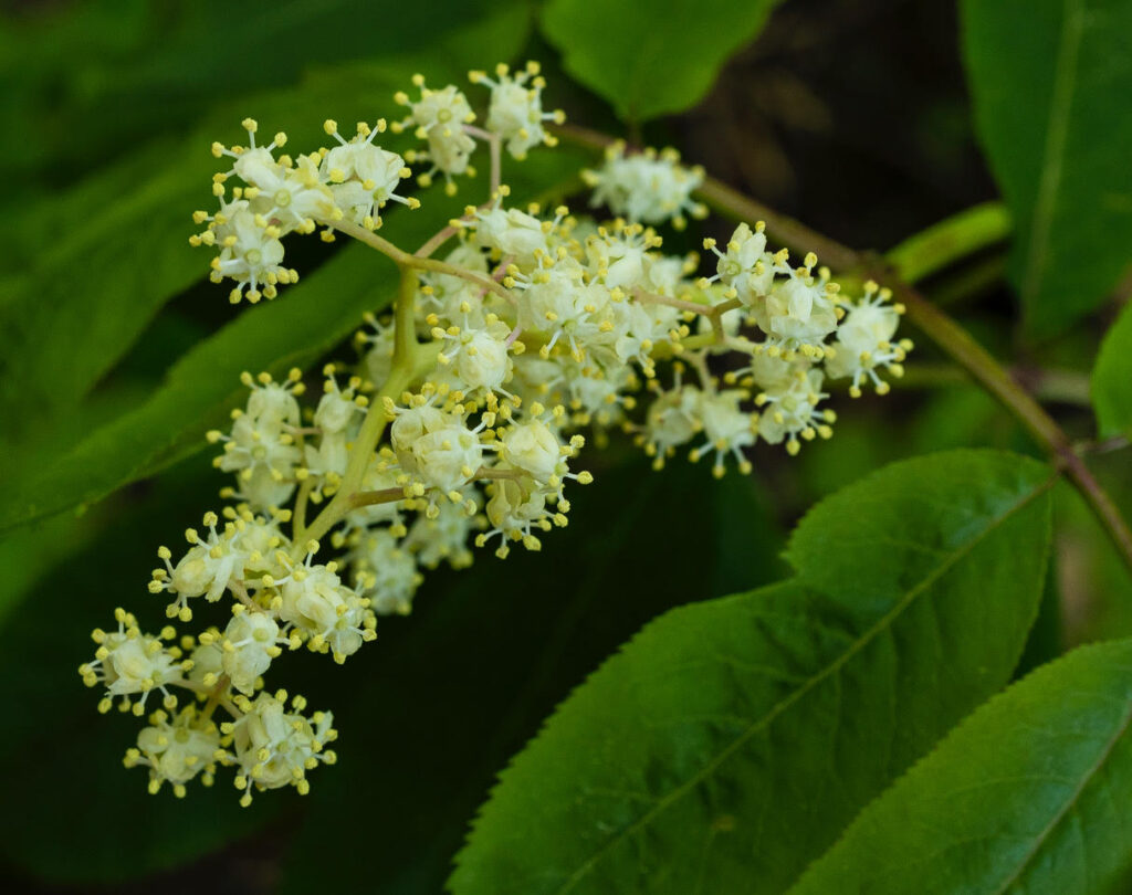 A closeup of red elderberry flowers (Sambucus racemosa)