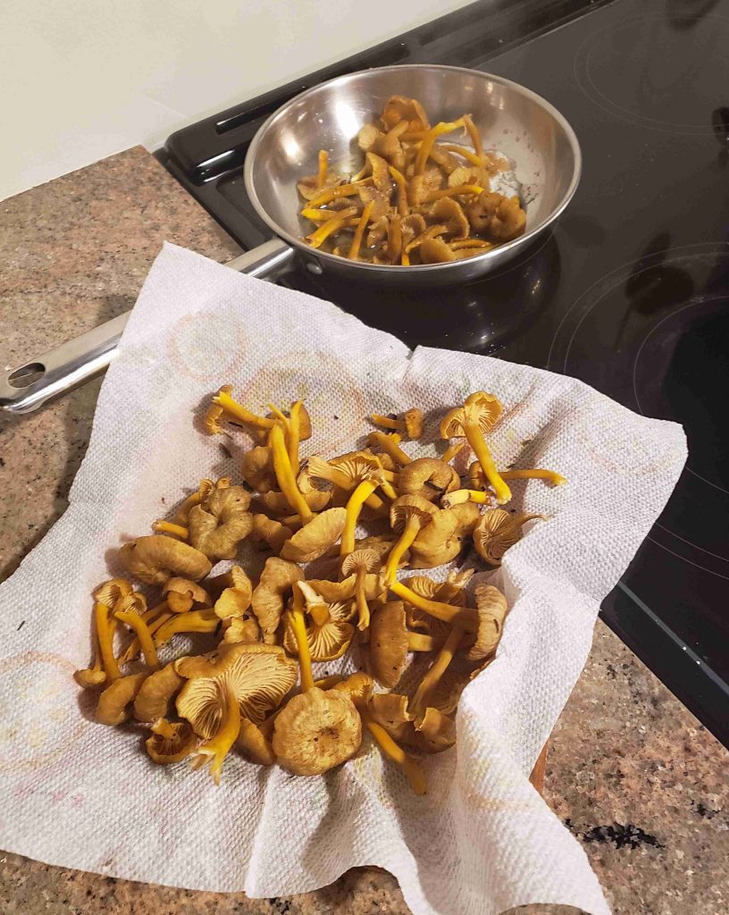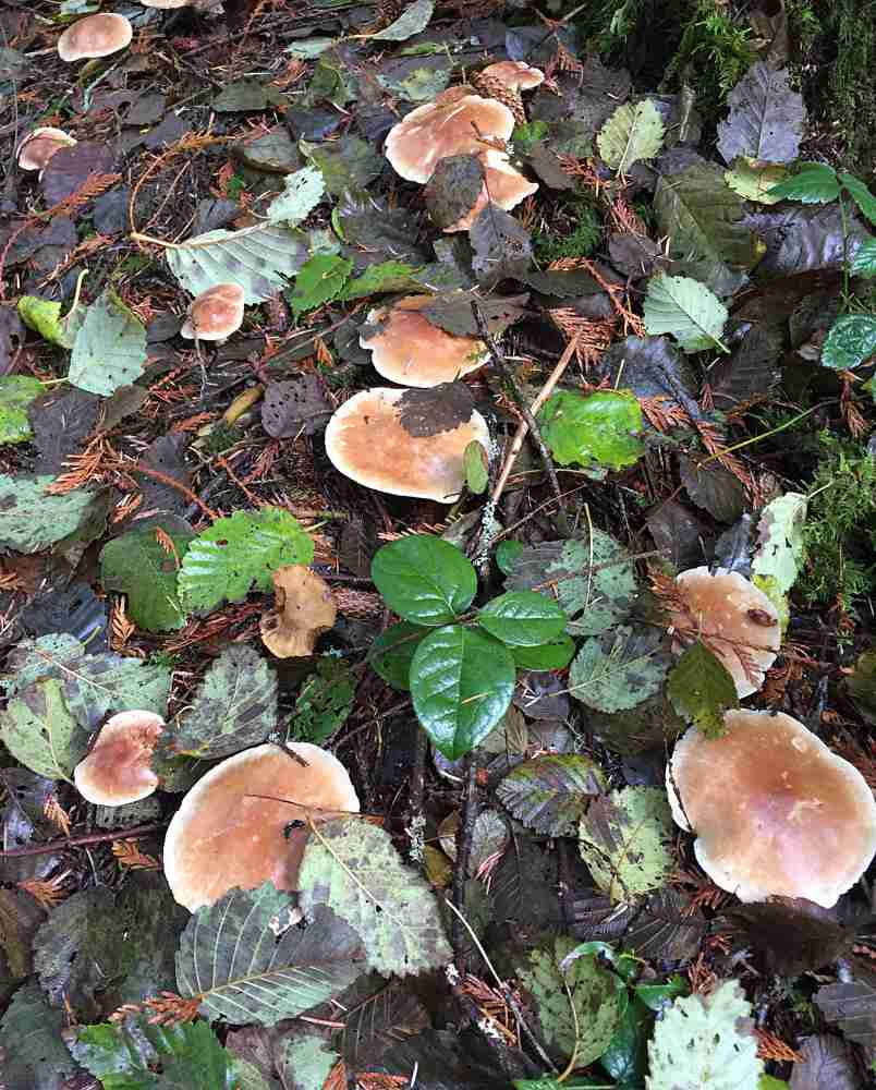 Finally a PS on the weather. It has been so mild this fall, apart from one short spell of sub-zero temps, that many shrooms are continuing to appear. There has been a second flush of large Lobsters on our property and on December 2nd I picked some rather large, perfect chanterelles – 15 cm in length and 12 across the cap. This is the latest I have ever picked chanterelles in good condition, not softened by frost. This Fall has produced bumper crops of chanterelles, hedgehogs and many other species edible and otherwise. After three seasons where conditions were far from ideal (long hot summers lasting into October), this year has been optimal in terms of temperature and moisture at the right times. Fungi are highly sensitive to their environment!!! It is a pity that this year we have not been able to conduct fungus ID sessions in the field and forest – photos are a poor second best. Next year we hope….