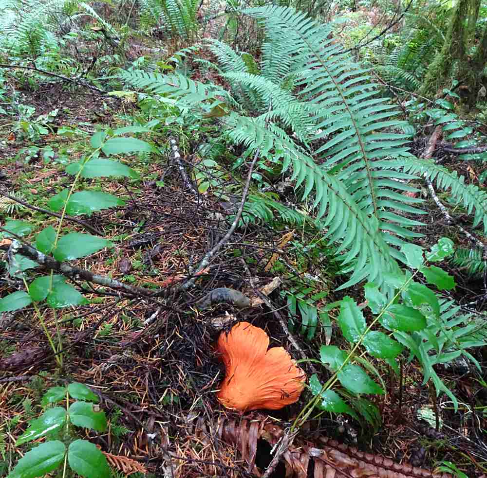 My Mom, Betty, and I were having a great time looking at shrooms in the Buttle Lake area last weekend, and happened upon a patch of lobsters, all with their own unique character (see photos #1-4). The bright salmon-colour is quite a knockout!