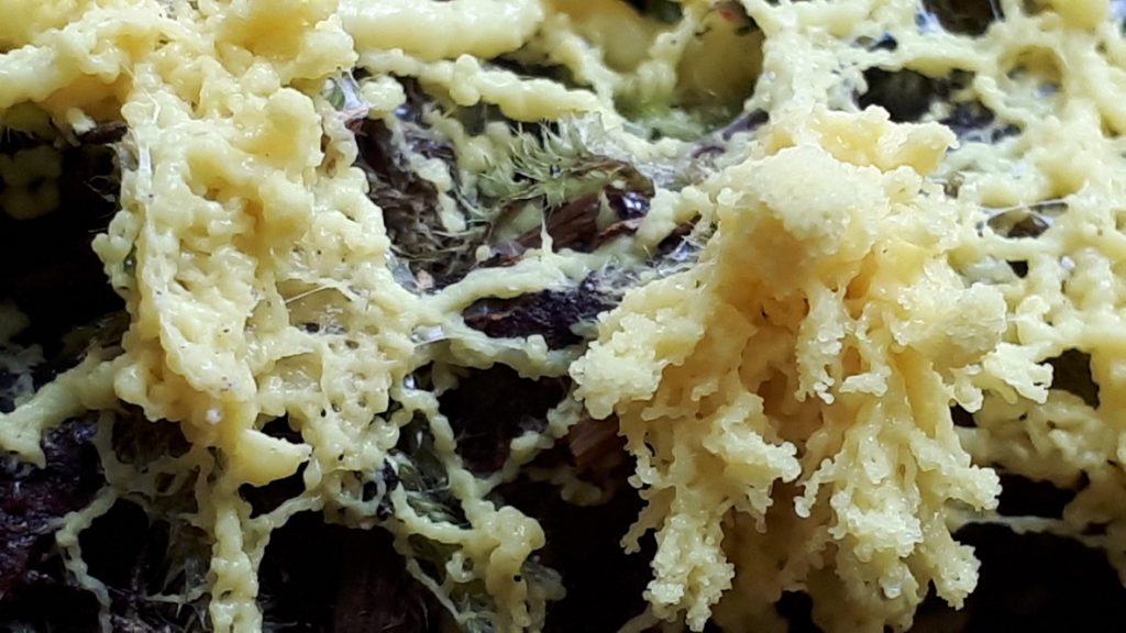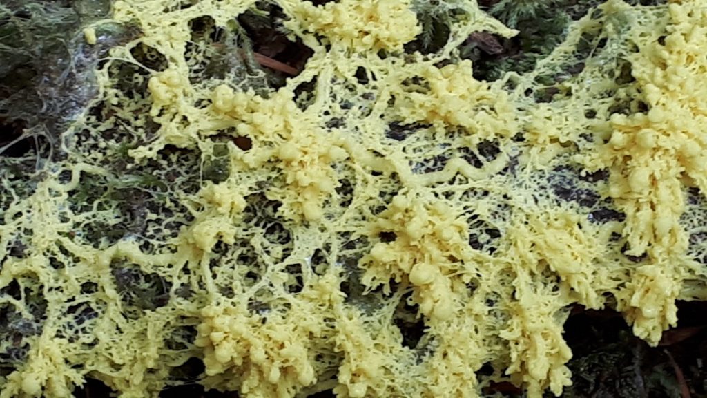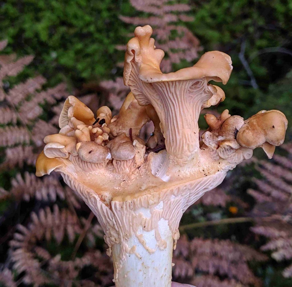 Deeper blues include Arrhenia chlorocyanea (#6 ) from Kin Beach a few years ago, and Polyozellus multiplex – blue chanterelle (#7), which we found in late June on the Elk River Trail. It can be closer to black than blue, depending on age.