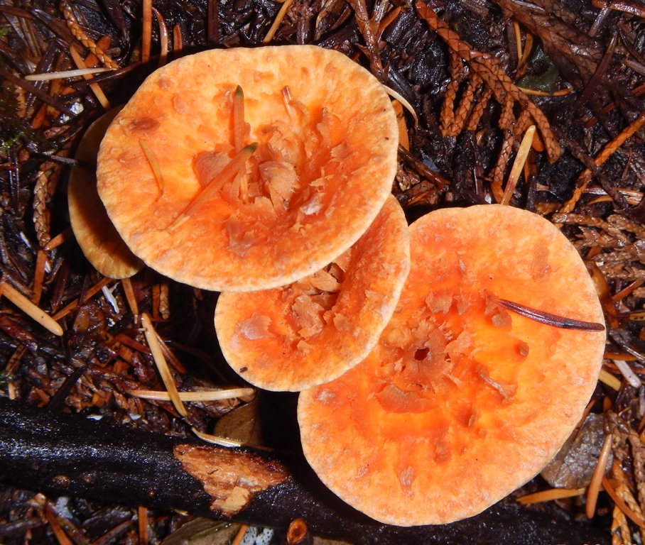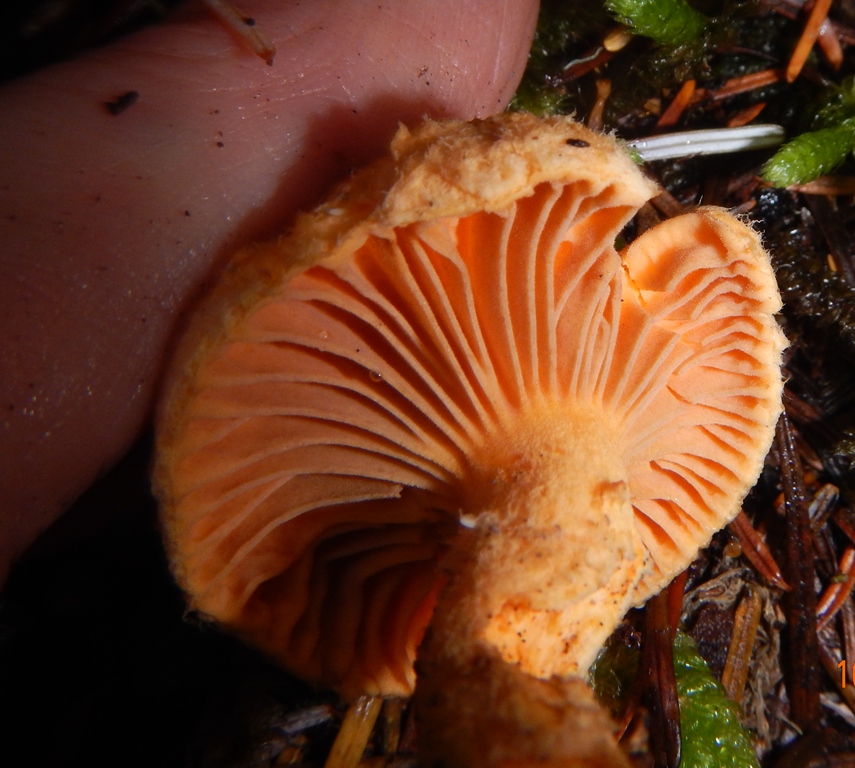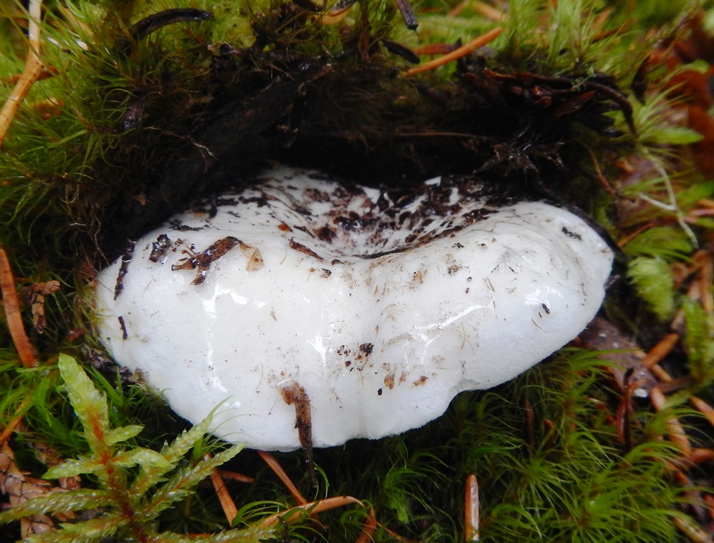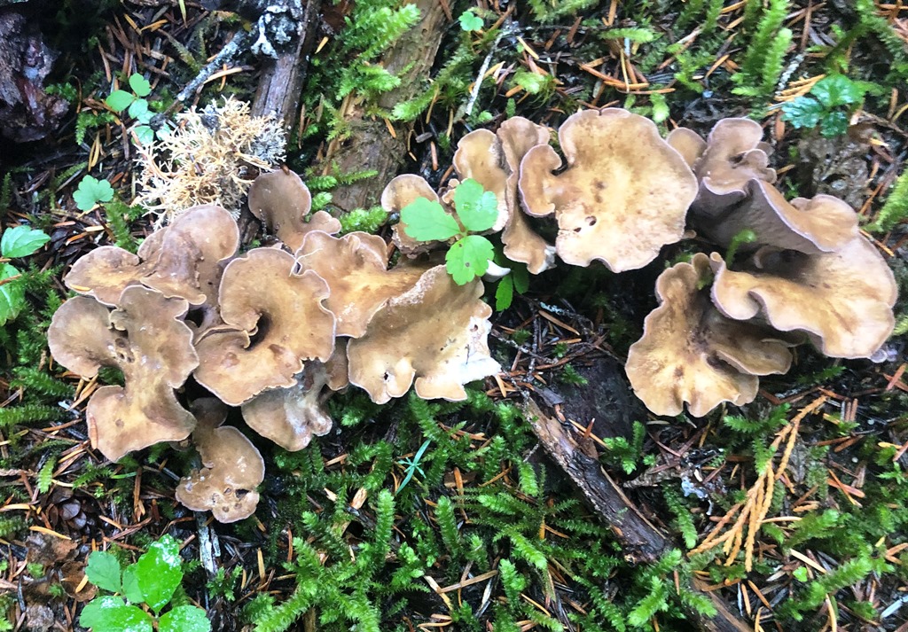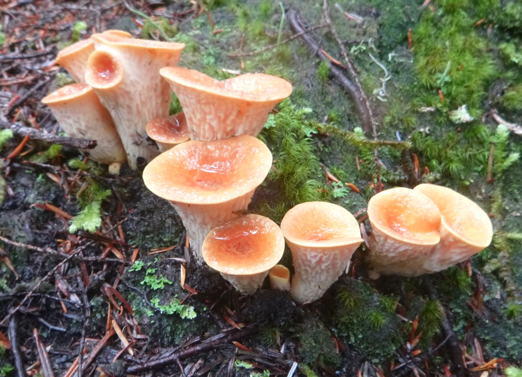 This September, Kate and Gary found an early stage Amanita pachycolea (western grisette) on a path in their woods (photo 11). We located a mature example on the trail to McKenzie Lake in the Park. The cap is striate, often without warts, and the stipe is quite slender, emerging from a volva that is constricted half way up (photos 12 & 13).