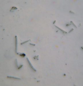 n spicule characters. The spicules are structural elements, typically rods of mineral material that are encased in organic compounds. I prepped out some spicules using standard household bleach and found these lovely ~100 micron spicules (“Tylostyles”) of SiO2. Turns out this thing is called “Dead Man’s Fingers”, Homaxinella amphispicula. It is a demosponge, which is to say a mixture of organic structural elements and mineralized ones. It is a subtidal species, so likely kicked up during a very strong storm around the wave base.