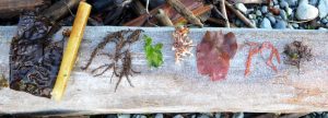 We had a good turnout on a mild and bright Wednesday morning at Williams Beach for the second highest tide of the year. While confined to a narrow strip of shore between the gentle waves and the slippery, imbricate logs, we managed to see quite a lot. The following are some notes and observations related to the outing.