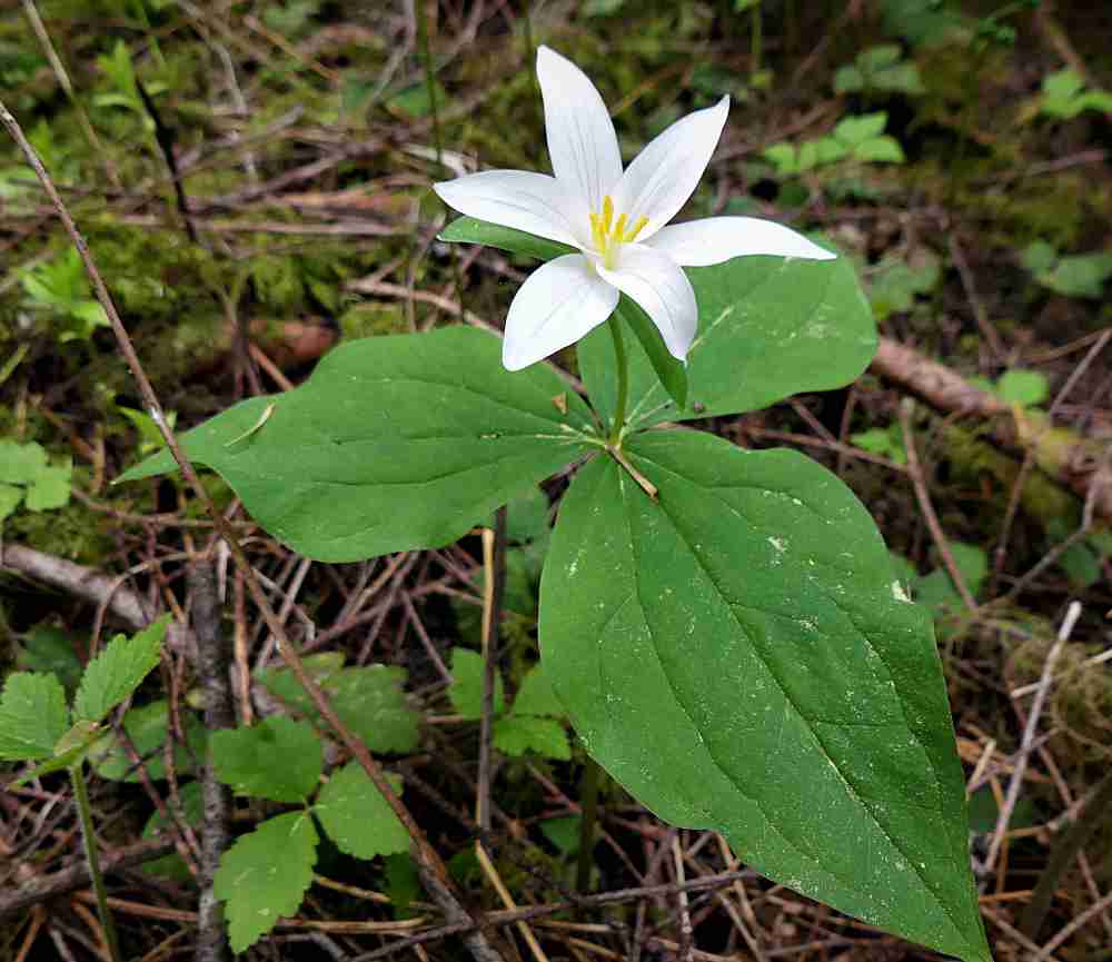 Here are a few photos taken of double trilliums a few days ago. One of our favourite spots for the “Big Search” for unusual trilliums is along the Lower Lost Frog Trail in Campbell River’s Snowden Demonstration Forest and we were once more successful this year.  One usually finds the extra petals of the double trillium to be incomplete or malformed, but photo 1 attached is of a rather perfect specimen.  And then…we found what was, for us, an even rarer mutant(?)- a trillium trying for 9 petals and which had at least 6 leaves, over 3 sepals and at least 2 pistils/stamens sets.