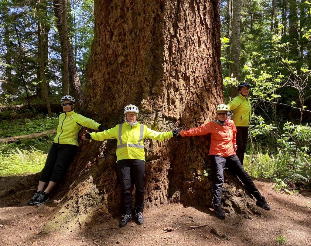 This group of local cyclists (click the photo to enlarge it) was out last week touring the trees nominated for the Comox Valley Nature Tree of the Year 2021. Circling the massive Douglas fir nominated at Kitty Coleman Park are, left to right, Marg Harris, Barb Fudge, Angela Dawson and Sue Fabrizio. Their quest continues to other trees this week.