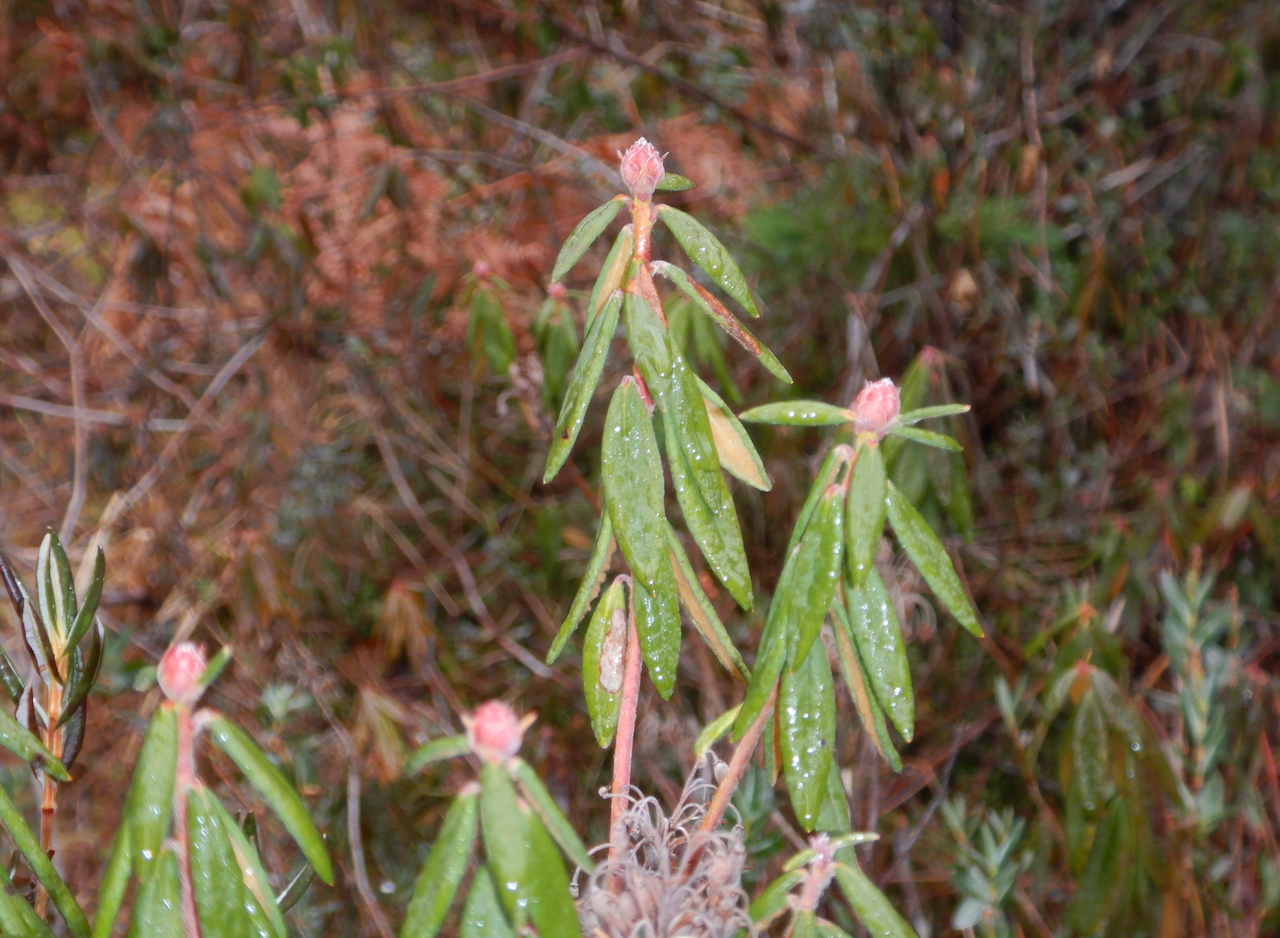 On February 11 we walked down the south side of the Puntledge River from the dam. Too early yet for the sweet gale (Myrica gale), though it is in bud. The evergreen Rhododendron groenlandicum (photo 1) and Kalmia microphylla both had buds, but the rhododendron leaves were still firmly pointing downwards in the cold – perhaps expecting the snow we have just received!